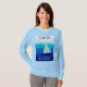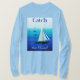 Long Sleeve Tee en arte Poster de yates en el mar, con la frase "atrapar el viento", sobre un fondo cobalto y azul ceruleño del océano