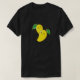 El color es muy bonito al natural, como la foto. El tejido es suave y de buena calidad. Sin defectos en el tintado, ni hilos sueltos o descosidos. Bien la impresión. Los bordes de las letras y el dibujo son nítidos, y el color contrasta muy bien con el de la camiseta.