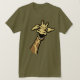 Camiseta ilustrativa de humor en tonos de jirafa amarilla, negra y marrón. Giraffe se inspiró en la jerga rimatoria de Cockney, Giraffe es un London / Essex, inglés que dice usado para reír, por lo que decidí hacer reír a mi jirafa. Ciertamente, este fue un desafío a dibujar pues parece que las jirafas no se ríen realmente, ¡así que tuve que usar una pequeña licencia artística! Diseño original de arte gráfico de Sarah Trett.
