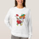 Show off your fun personality with this women's long-sleeve T-shirt featuring a hilarious zany woman running cartoon graphic. This humorous illustration captures a celebratory, high-energy character in a colorful clown-style or Mardi Gras outfit with beads, a balloon, and a trumpet. Perfect for cool weather, casual outings, or themed parties, this funny art shirt is comfortable and unique. It's an excellent gift idea for birthdays, holidays, or anyone who appreciates comical, whimsical character designs. Stay cozy while making a bold, fun statement.