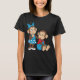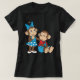 "This relatable cartoon design features a contrast in emotions between two monkeys, Zina and Mimo. Zina, in her blue polka-dot dress and bow, stands with a thoughtful expression and a comforting hand on Mimo's shoulder. Mimo, sitting in his blue overalls, looks apathetic or bored. The scene captures a common dynamic in relationships or friendships, blending care and indifference. The vibrant, classic cartoon style makes this a charming yet slightly humorous image. This versatile design is suitable for products aimed at couples or friends, especially those who appreciate lighthearted, observational humor about relationships. Imagine it on apparel, humorous greeting cards, or relatable stationery."