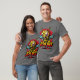 El color es muy bonito al natural, como la foto. El tejido es suave y de buena calidad. Sin defectos en el tintado, ni hilos sueltos o descosidos. Bien la impresión. Los bordes de las letras y el dibujo son nítidos, y el color contrasta muy bien con el de la camiseta.