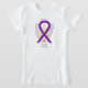La conciencia de las migrañas crónicas utiliza una cinta morada y burdeos para la conciencia de su causa. El arte de la camiseta presenta una pintura de un ángel con una cinta de conciencia morada y burdeos. El mensaje en la parte delantera de la camiseta del ángel de la conciencia dice "Cree CURA Migrañas Crónicas". En la parte posterior de la camiseta contiene el mensaje de la causa "Espero y apoyo la conciencia para curar las migrañas crónicas". La ropa con el arte de la cinta del ángel de la conciencia morada y burdeos se puede personalizar con mensajes personalizados para hacer grandes camisetas para eventos de causa para camisetas de recaudación de fondos, camisetas para caminatas de equipos de grupo, regalos de camisetas de conciencia, u otras ocasiones especiales de eventos de causa para mercancía que ayude a aumentar la conciencia de esta causa en público para la ayuda de la sociedad en