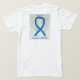 Concienciación sobre el tráfico de personas usa una cinta azul para concienciar sobre su causa. El arte de la camisa muestra una pintura de ángel de la cinta de reconocimiento azul. El mensaje de la camiseta del ángel de la conciencia dice "Concienciación sobre la trata de personas". Hay una gran imagen en la parte posterior de la camisa y una imagen más pequeña en la parte delantera de la camisa. La ropa de arte de la cinta de ángel de la conciencia azul se puede personalizar con mensajes personalizados para hacer ropa de evento de gran causa para camisetas de recaudación de fondos, camisetas de caminatas de equipo de grupo, regalos de camisetas de concientización u otros eventos de causa especial para la mercadería para ayudar a aumentar la conciencia de esta causa en público por la ayuda de la sociedad en crear ayuda y causar cambio.