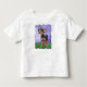 Camisetas y sudaderas de perro Chihuahua Parade Animal presenta a nuestro lindo personaje de perro negro y marrón parado en un jardín de hierba con un cielo azul y morado texturizado con una divertida frontera violeta pintada por el talentoso ilustrador infantil Traci Van Wagoner. Mira el lindo perro pequeño que viene y va con esta divertida obra de arte de la cabeza del crío juguetón en el frente y la cola del perro gracioso en la espalda. Muestra tu mejor lado yendo y viniendo hoy y trae algunas sonrisas al mundo. ¡Vaya!