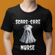 Enfermera de Cuidados de Miedo camisetas unisex de Halloween para cualquiera. Camisetas de grupos divertidos para su clínica, oficina o personal hospitalario.