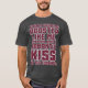 El color es muy bonito al natural, como la foto. El tejido es suave y de buena calidad. Sin defectos en el tintado, ni hilos sueltos o descosidos. Bien la impresión. Los bordes de las letras y el dibujo son nítidos, y el color contrasta muy bien con el de la camiseta.