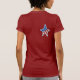 Las estrellas y los corazones se combinan con los diamantes para hacer este gráfico retro patriótico. Hay una marca de acompañamiento en la parte posterior de la camiseta.
