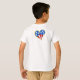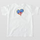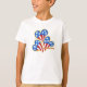 Una bandera estadounidense y un corazón triples se combinan para hacer este lindo gráfico patriótico que dice "Ama a Estados Unidos". Hay una marca de acompañamiento en la parte posterior de la camiseta.