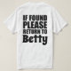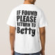 Este diseño está diseñado para ser personalizado con el nombre de su BFF, amigo, cónyuge o pareja. Se combina perfectamente con nuestra camiseta de "Soy Betty". No te pierdas cuando estés en el camino. Este diseño humorístico es perfecto para un regalo de mordaza boda, disfraces de parejas o un regalo de viaje. Es ideal para los fondos blancos y de color claro. Fácilmente personalizado cambiando "Betty" por cualquier otro nombre. Sugerencia de diseño: dimensionar el texto personalizado a un poco más ancho que "RETORNAR A".