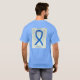 La conciencia del bullying usa una cinta azul para crear conciencia sobre su causa. El arte de la camisa muestra una pintura de ángel de la cinta de reconocimiento azul. El mensaje de la camiseta del ángel de la conciencia dice "Conciencia del bullying". Hay una gran imagen en la parte posterior de la camisa y una imagen más pequeña en la parte delantera de la camisa. La ropa de arte de la cinta de ángel de la conciencia azul se puede personalizar con mensajes personalizados para hacer ropa de evento de gran causa para camisetas de recaudación de fondos, camisetas de caminatas de equipo de grupo, regalos de camisetas de concientización u otros eventos de causa especial para la mercadería para ayudar a aumentar la conciencia de esta causa en público por la ayuda de la sociedad en crear ayuda y causar cambio.