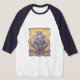 Desfile Animal Hippo La Manga Básica 3/4 de los Hombres es para el lado divertido de usted, presentando nuestro arte original de un lindo personaje hipopótamo pintado por nuestro talentoso artista infantil, Traci Van Wagoner, parado en la hierba verde de la sabana con un texturado cielo amarillo, naranja y divertida frontera violeta. Vea cómo el hipopótamo se acerca y sigue con esta divertida obra de arte de la divertida cabeza del paquidermo en el frente y la cola del hipopótamo africano en la espalda contra un fondo texturado de cepillo seco. Únete al Desfile de Animales y muestra tu mejor lado hoy con una de nuestras graciosas camisetas y cabezas de animales. Estás obligado a hacer sonreír a todo el mundo.