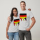 Tres jugadores de fútbol alemanes en silueta juegan delante de la bandera alemana. Disponible en los hombres, las mujeres, los niños y ropa infantil.