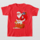 Diseño de camisetas: Santa Claus comparte la alegría navideña con niños felices, con colores vibrantes y detalles festivos para una camisa animada con temática de Navidades.