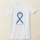 El lazo morado y verde azulado significa conciencia para la prevención del suicidio. (La Prevención del suicidio también utiliza la cinta amarilla de sensibilización.) El púrpura y el verde azulado también combinan los dos colores de conciencia para la violencia doméstica (púrpura) con el ataque sexual (verde azulado) para mostrar apoyo por ambas causas. El arte de la camisa muestra una pintura de ángel de cinta verde azulada y púrpura. El mensaje principal de la camiseta del ángel de la conciencia dice "Believe HOPE<Your Cause>". En la parte posterior de la camisa aparece el mensaje de causa "Espero y apoyo a la toma de conciencia por<Cause Name>". La ropa de arte púrpura y verde azulada de la cinta de ángel de la conciencia se puede personalizar con mensajes personalizados para hacer ropa de evento de gran causa para camisetas de recaudación de fondos, camisetas de caminatas del equipo de grupo, regalos de camisetas de concientización u otros eventos de causa especial para la mercadería, para ayudar a aumentar la conciencia pública de esta causa por la ayuda de la sociedad en crear ayuda y causar cambio.