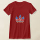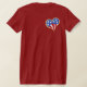 Una bandera estadounidense y tres tablas de surf se combinan para hacer este gráfico patriótico que dice "Surf America". Hay una huella cardíaca en la espalda derecha de la camiseta.