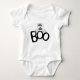Un esqueleto y texto que dice "BOO" en camisetas de Skeleton Boo Halloween, bolsos de truco o regalo, tarjetas, pegatinas, tazas, imanes y otros artículos de diseño esqueletos de Halloween.