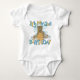 Un adorable oso marrón, una colmena de abejas y un texto amarillo y azul que dice "¡Es mi segundo cumpleaños!" en camisetas de cumpleaños número 2, trajes para el cuerpo, botones de cumpleaños número 2, imanes, tarjetas, bolsas de té y más.