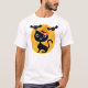 ¡Un gato en un gorra negro de brujas se sienta con una brillante luna de la cosecha en el fondo mientras dos murciélagos vuelan por ahí! Cats and Bats Camisetas de Halloween, trajes para el cuerpo, sudaderas, tazas, imanes, botones, bolsos de truco o de regalo, tarjetas, pegatinas y otros adorables y coloridos artículos de diseño de Halloween.