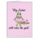Las camisetas de la hermana grande, las tazas, las tarjetas, los imanes, el franqueo, los pegatinas, y otros artículos de la ropa y del regalo de la hermana grande que ofrecen una rana del chica y un cojín y un texto de lirio que todavía lea a la "hermana grande gobiernan el cojín!". ¡Grandes regalos del hermano para el más viejo SIS cuando llega la hermana del hermano o del bebé del recién nacido!