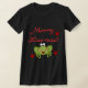 Una rana verde da muchos besos navideños en nuestras camisetas feriadas "Besse Feliz", sudaderas, camisetas de tanques, pegatinas, imanes, gorras y otros Navidades ropa de vacaciones y regalos.