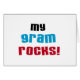 Camisetas, tarjetas, pegatinas, bolsas de té, imanes, botones y otros artículos con un diseño de texto negro, azul y rojo. Estos artículos de My Gram Rocks son una buena manera de mostrar tu amor por tu programa especial!