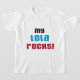 Camisetas, tarjetas, pegatinas, bolsas de té, imanes, botones y otros artículos de mi Lola Rocks con un diseño de texto negro, azul y rojo. Estos artículos de My Lola Rocks son una buena manera de mostrar tu amor por tu lola especial!