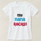 Camisetas, tarjetas, pegatinas, bolsas de té, imanes, botones y otros artículos con un diseño de texto negro, azul y rojo. ¡Estos artículos de My Nana Rocks son una buena manera de mostrar tu amor por tu nana especial!