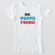 Camisetas, tarjetas, pegatinas, bolsas de té, imanes, botones y otros artículos con un diseño de texto negro, azul y rojo. ¡Estos artículos de My Poppy Rocks son una buena manera de mostrar tu amor por tu amapola especial!