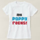 Camisetas, tarjetas, pegatinas, bolsas de té, imanes, botones y otros artículos con un diseño de texto negro, azul y rojo. ¡Estos artículos de My Poppy Rocks son una buena manera de mostrar tu amor por tu amapola especial!