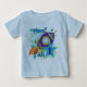 ¡Camisetas del cumpleaños de la nave de Rocket 1ras, monos, camisetas largas de la manga, bolsos, botones, y más en un diseño púrpura y azul brillante, grande para el primer cumpleaños del bebé!