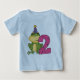 ¡Si usted ama las ranas que usted amará nuestras camisetas del cumpleaños de la rana del fiesta 2das, monos, las bolsas de asas, el cumpleaños abotona, y más para el primer cumpleaños del bebé! ¡Ofrece una rana verde que lleva un gorra púrpura y un número rosado grande 2 del fiesta!