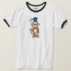 El color es muy bonito al natural, como la foto. El tejido es suave y de buena calidad. Sin defectos en el tintado, ni hilos sueltos o descosidos. Bien la impresión. Los bordes de las letras y el dibujo son nítidos, y el color contrasta muy bien con el de la camiseta.