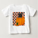 Camisetas de Halloween coloridas, tazas, tarjetas, pegatinas, bolsos de truco o de regalo, imanes y otras prendas y regalos de Halloween con un lindo gato negro en calabaza y diseño de puntos naranjas y negros.
