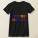 Camisetas, caramelos, tarjetas, pegatinas, botones, bolsos de tote, mousepads y otras prendas de Future Momma con texto de colores primarios.
