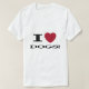 El texto negro y el diseño del corazón rojo para los amantes del perro dice "¡I (corazón) Perros!" en camisetas de I Heart Dogs, trajes corporales, tazas, tarjetas, bolsas de té, cadenas de claves y otros artículos de regalo y prendas de vestir para los amantes de los perros.