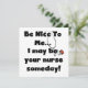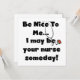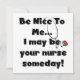 Enfermera camisetas de texto, tazas, tarjetas, pegatinas, botones, bolsas y otras prendas de enfermería y regalos con un estetoscopio y texto que dice "¡Sé amable conmigo... ¡Algún día podría ser tu enfermera!".
