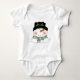 Un muñeco de nieve con una sonrisa tierna, nariz de zanahoria, ojos de carbón, pañuelo de rayas azules y amarillas, y un gorra de fieltro negro en camisetas sonrientes de Snowman, caramelos, tazas, imanes, tarjetas, llaveros, bolsas de té y mucho más.