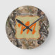 Caza de camuflaje en camo Caza de árboles reales Naranja Deer Doe Buck Duck Leaf Twig Country Rustic Monograma Inicial Wall Clock Personalizado