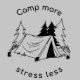 Manténgase caliente y listo para el camino con este capuchón "Camp más, menos estrés". Diseñado para unas vacaciones relajantes, es perfecto para las mañanas frescas, fogatas nocturnas o aventuras de viaje por carretera.