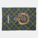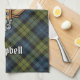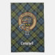 Insignia de Campbell escudo rodeada de una correa y hebilla sobre fondo tartán. Texto personalizado.