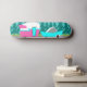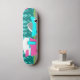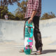Este Camper Retro / Trailer y Skateboard cuenta con un moderno y minimalista dibujo personalizado de mediados de siglo que le dejará listo para tomar la carretera abierta. Un homenaje a los años 50, este diseño presenta un auto turquesa vintage con la parte blanca, tirando de un remolque de viaje kitschy a su destino final. El RV retro, perfectamente restaurado, tiene una mitad inferior rosa caliente, la mitad superior blanca y un rayo turquesa que separa los dos. La puerta del lado del camper también es de color turquesa. El acento final es el ala rosa caliente que sobresale desde la parte trasera de esta casa sobre ruedas. Los alegres campistas están conduciendo por un camino gris. La carretera está rodeada de exuberante hierba verde. Como telón de fondo, podemos ver las siluetas verde azuladas de un verdadero bosque de cedros, frente a un cielo acuático con nubes esponjosas y azul claro. Este diseño es perfecto para todos los que vienen de hippies retirados, hipsters recién llegados o cualquiera que quiera revivir algunos recuerdos de la infancia grandiosos. La mejor parte es que nadie pregunta: "¿Estamos ahí todavía?"