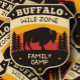 Camping de zona salvaje de búfalo | Pegatina de co