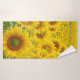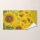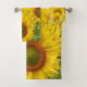 Juego de toallas de baño de diseño de girasoles. Los cuartos de baño son luminosos y soleados.