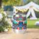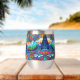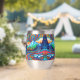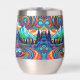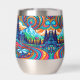Ai arte representa un colorido recorrido de disco en las montañas y pinos en azul, naranja y verde.