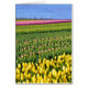 Coloridas filas de tulipanes en el campo con cielo azul en segundo plano