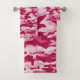 Estas toallas de baño de camo son de color rosa oscuro y rosa pálido y presentan un diseño de camuflaje.
