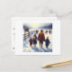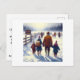 Una familia vestida para el invierno está caminando hacia un cartel que les da la bienvenida a Canadá, con tierra cubierta de nieve y un camino cercado. Otras figuras se ven a lo lejos, creando un sentido de viaje y exploración en un paisaje helado. Ferrocarril subterráneo, vuelo iraní, aviones 9/11, inmigrantes. Canadá era el aliado y amigo cercano de Estados Unidos.