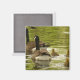 imán de Fridge con foto de gansos de Canadá y tres chismes amarillos esponjosos en el agua