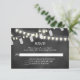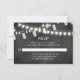 Esta tarjeta de respuesta caprichosa es la tarjeta de coordinación rsvp para nuestras cuerdas románticas luces post fiesta de boda sólo invitaciones. Un fondo de pizarra fija el fondo de esta recepción sólo para la invitación de la tarjeta de respuesta junto con cuerdas de luces blancas extravagantes y románticas y tarros de albañil. Fácil de personalizar.